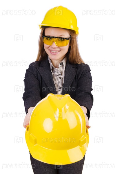 Женщина в строительной каске
