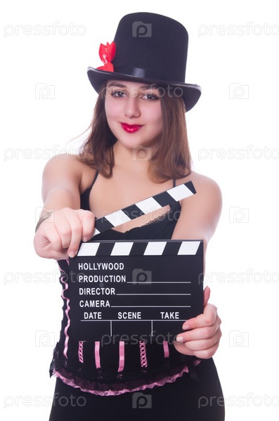 Молодая женщина с кинохлопушкой