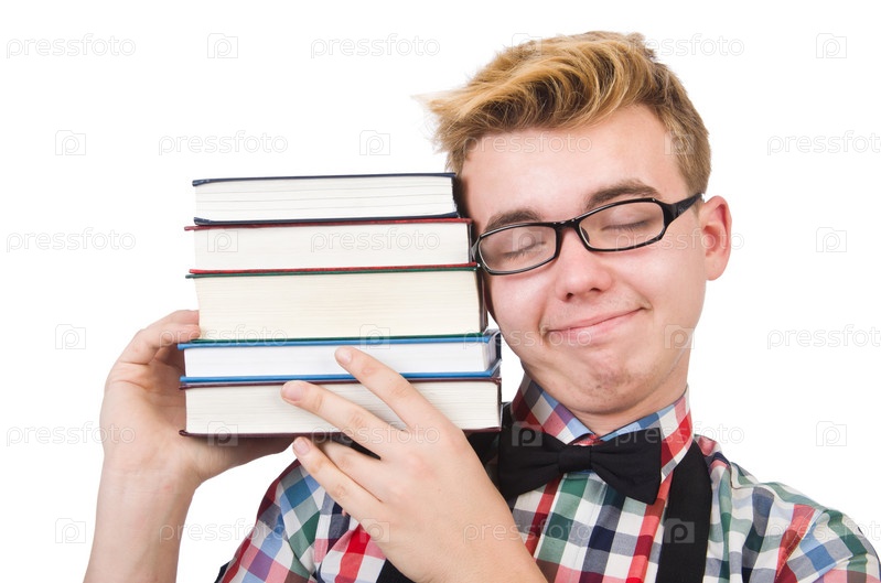 Смешной студент с книгами
