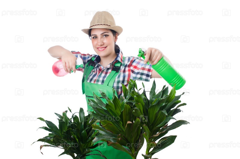 Девушка поливает растения
