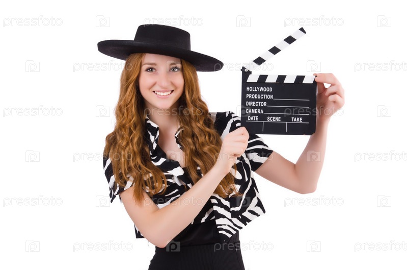 Молодая женщина с кинохлопушкой