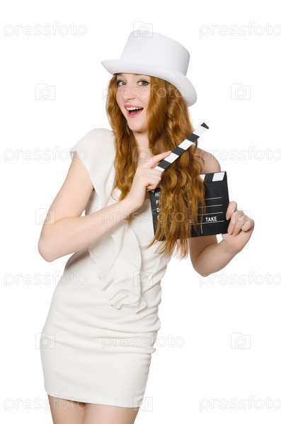 Молодая женщина с кинохлопушкой
