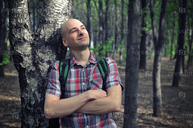 Мужчина на прогулке в лесу