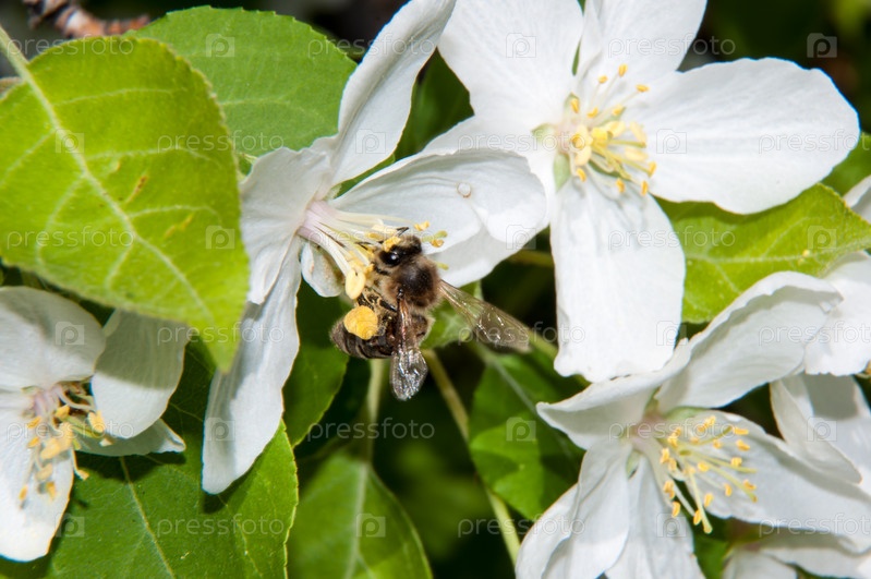 Насекомое на цветке яблони