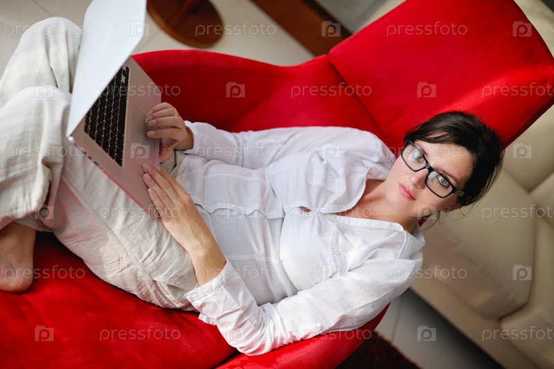 Женщина работает на ноутбуке