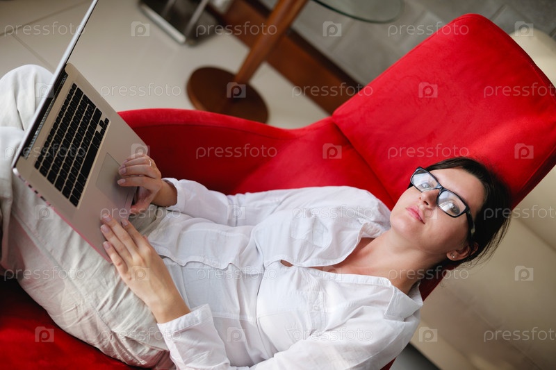 Женщина работает на ноутбуке