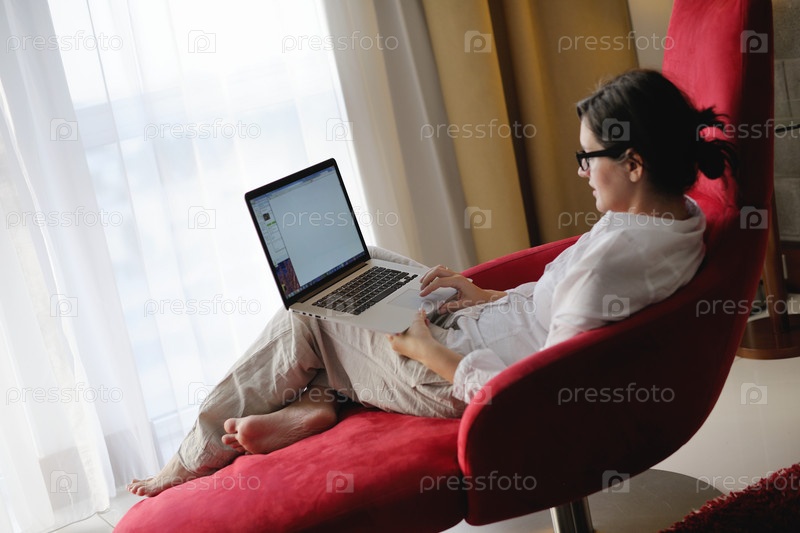 Женщина работает на ноутбуке