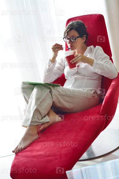 Женщина с планшетом сидит в кресле