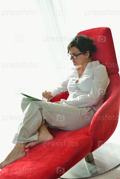 Женщина с планшетом сидит в кресле