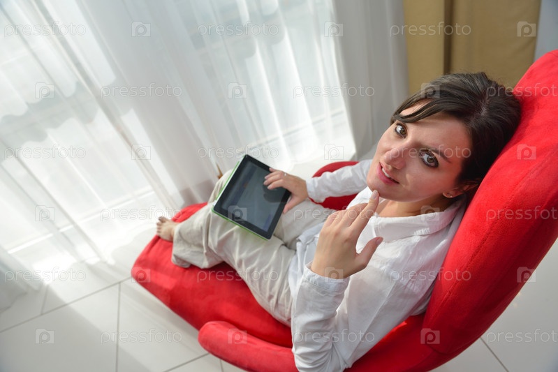 Женщина с планшетом сидит в кресле
