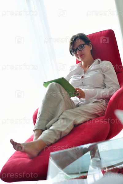 Женщина с планшетом сидит в кресле