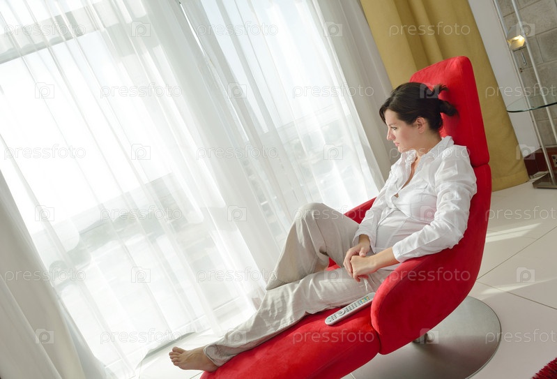 Молодая женщина отдыхает дома на диване