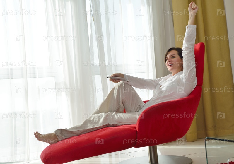 Молодая женщина отдыхает дома на диване