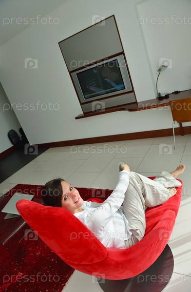 Молодая женщина отдыхает дома на диване