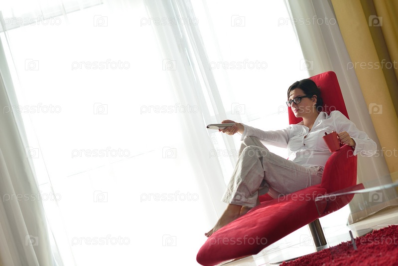 Молодая женщина отдыхает дома на диване