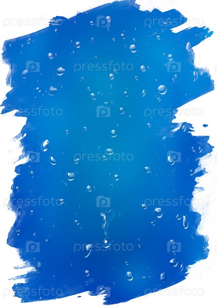 Синие пятна краски с каплями воды на белом фоне