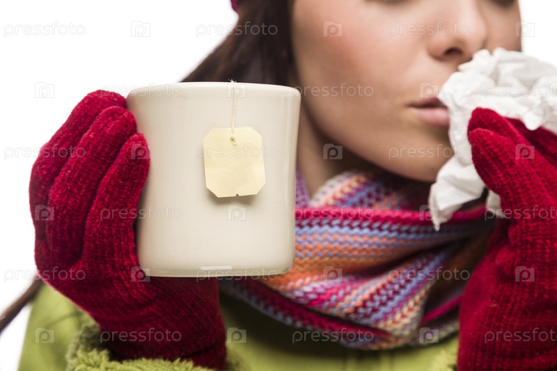 Больная женщина с чашкой чая