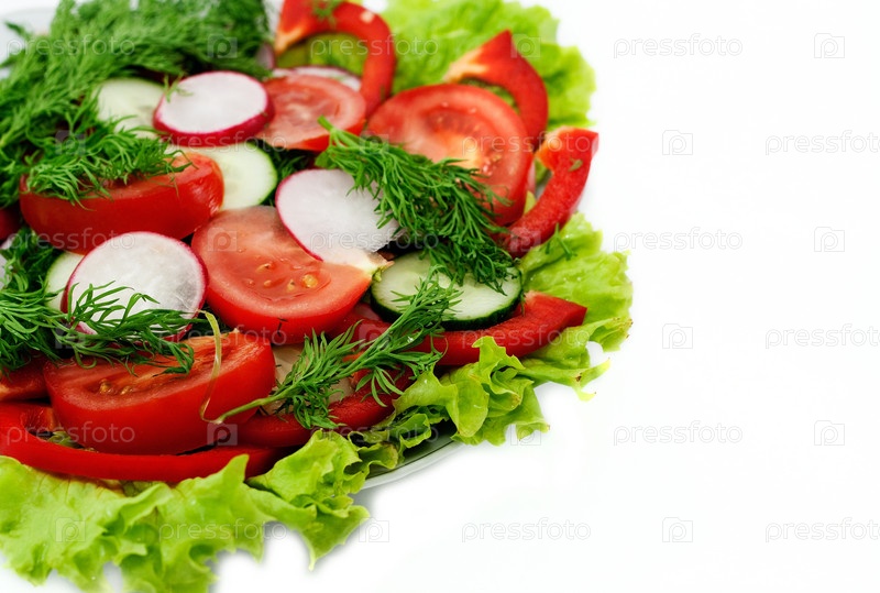 Салат из свежих овощей на белом фоне