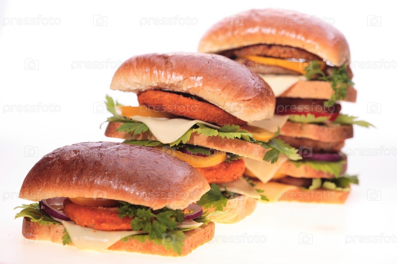 Три сэндвича на белом фоне