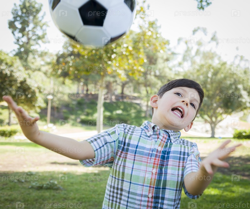 Мальчик играет с футбольным мячом