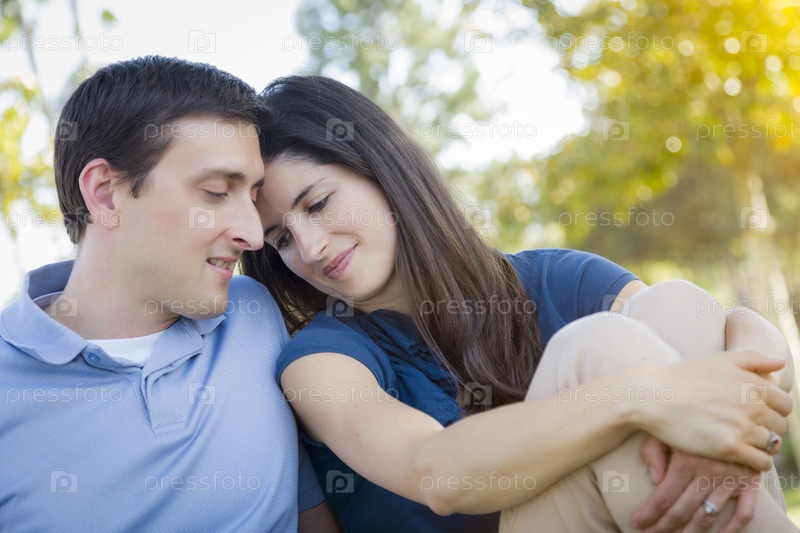 Портрет молодой привлекательной пары в парке