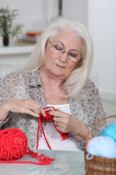 Пожилая женщина вяжет