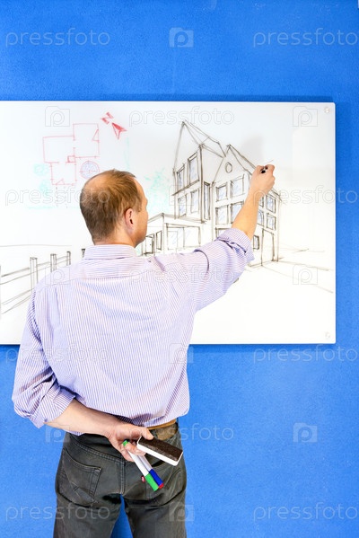 Архитектор на фоне чертежа
