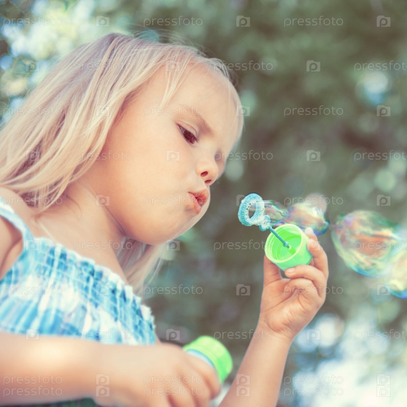 маленькая девочка с мыльными пузырями