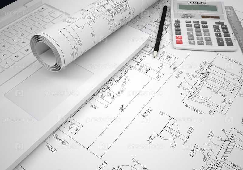 Свитки инженерных чертежей и инструменты