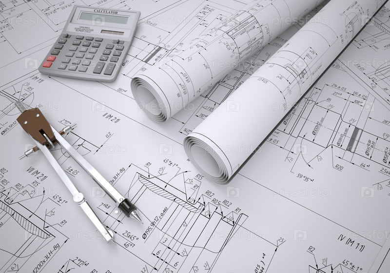 Свитки инженерных чертежей и инструменты