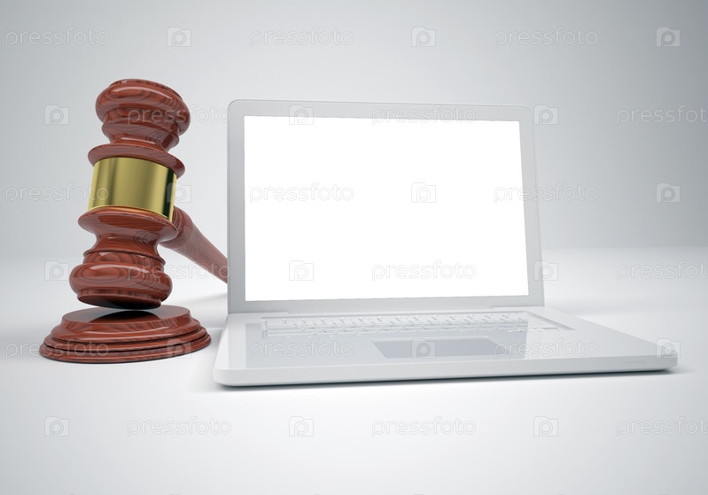 Молоток и белый ноутбук