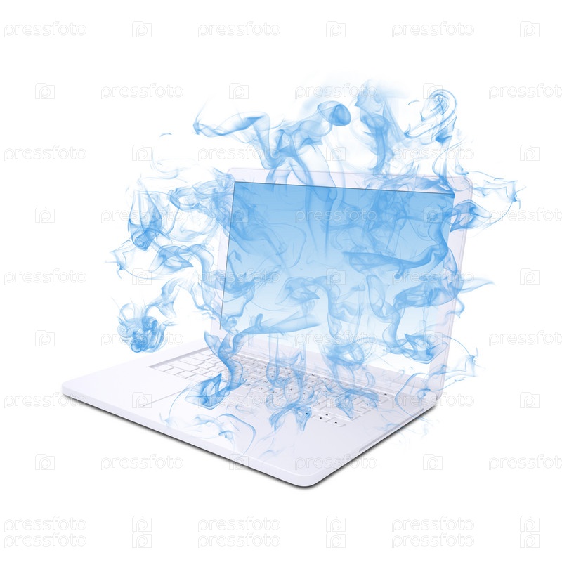Белый ноутбук и синий дым