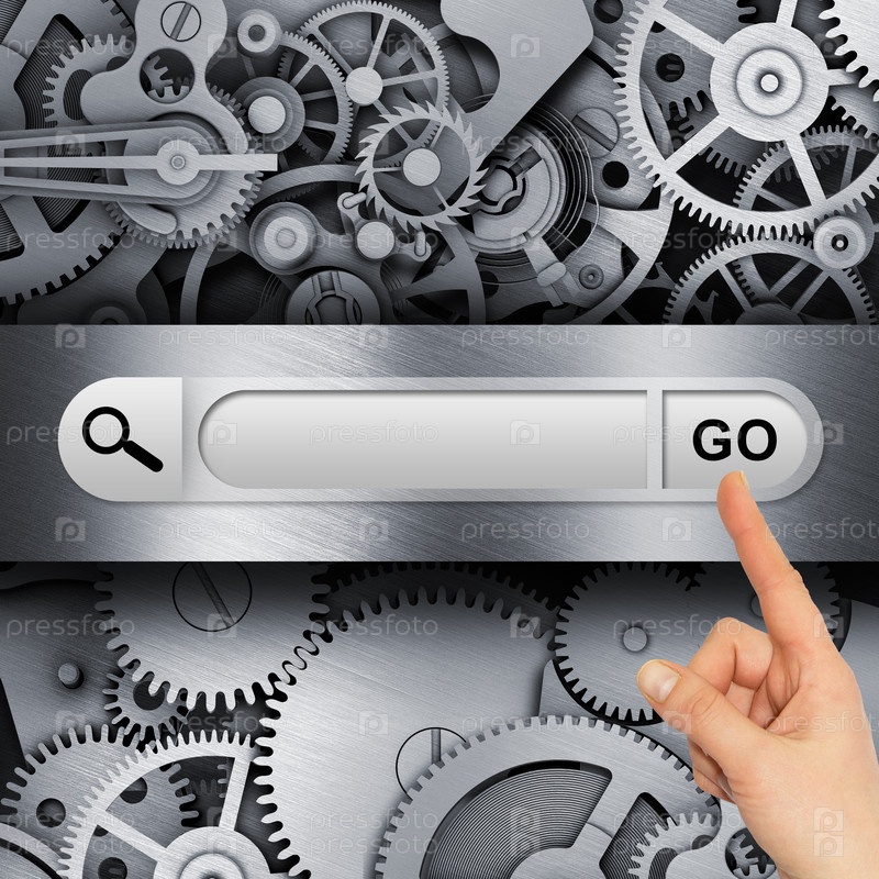 Рука на панели поиска в браузере
