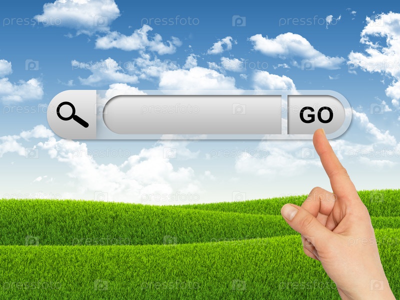Рука на панели поиска в браузере