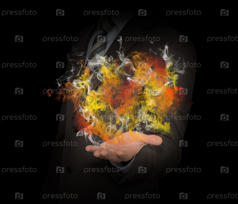 Бизнесмен держит цветной дым