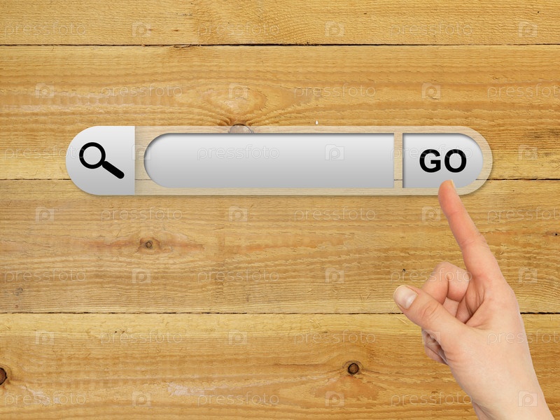 Рука на панели поиска в браузере