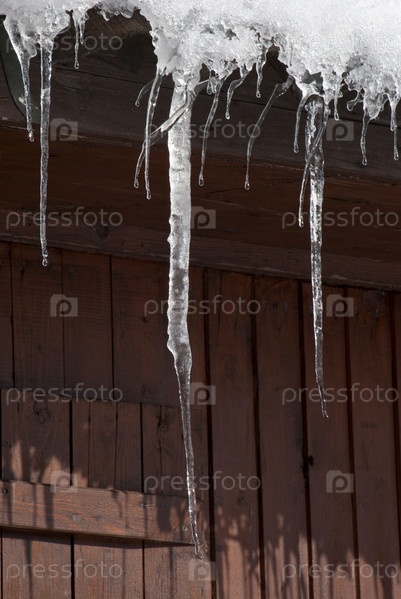 Сосульки, свисающие с крыши дома