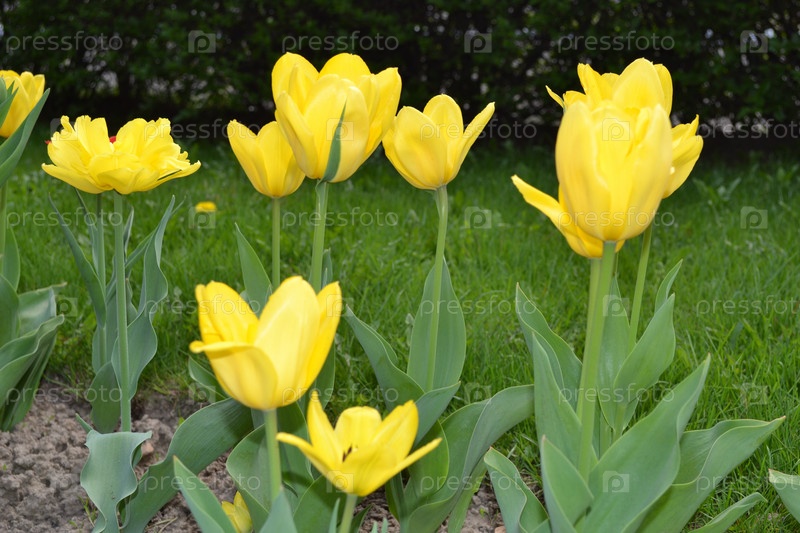 Желтые тюльпаны на клумбе
