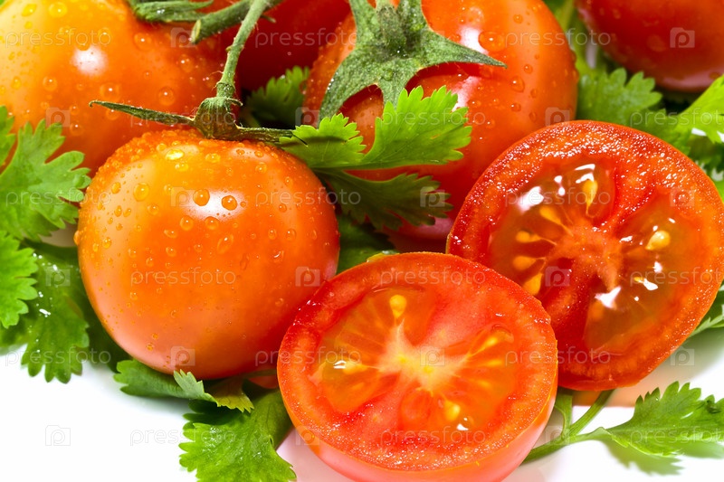 Томаты с листьями кинзы