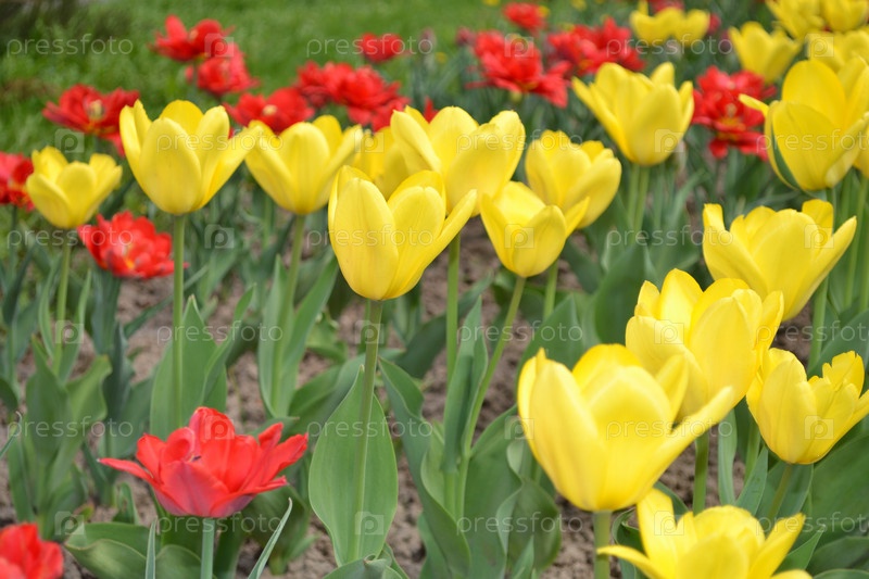 Цветочная клумба из тюльпанов