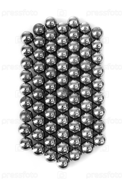 Металлические шарики крупным планом на белом фоне