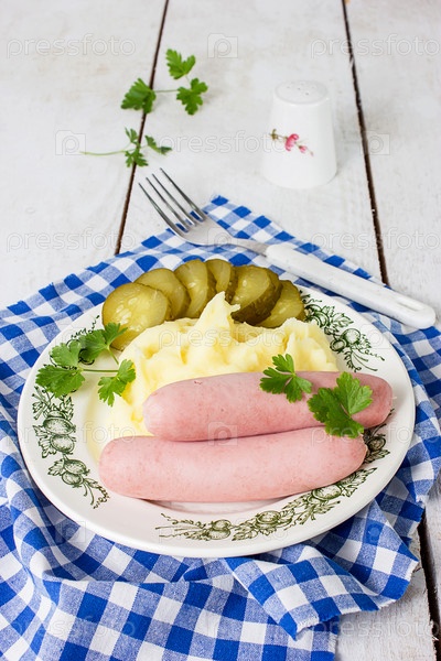 Отварные сосиски с картофельным пюре
