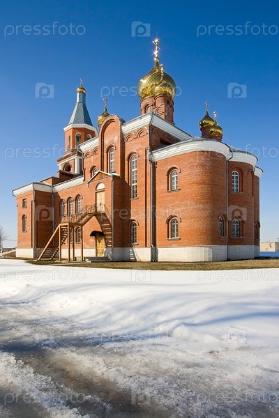 Вид на красивую церковь с золотыми куполами