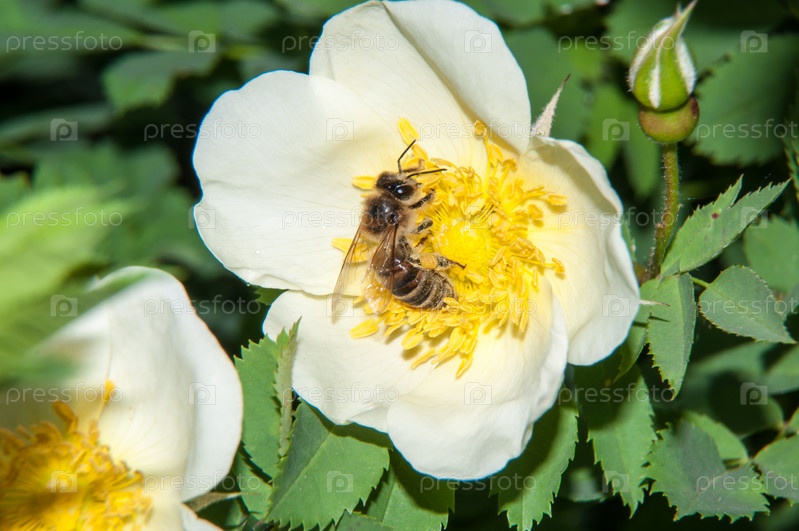 Пчела на шиповнике