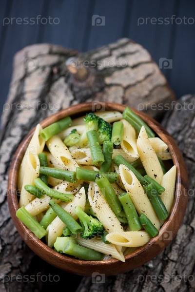 Пенне с отварной фасолью и брокколи