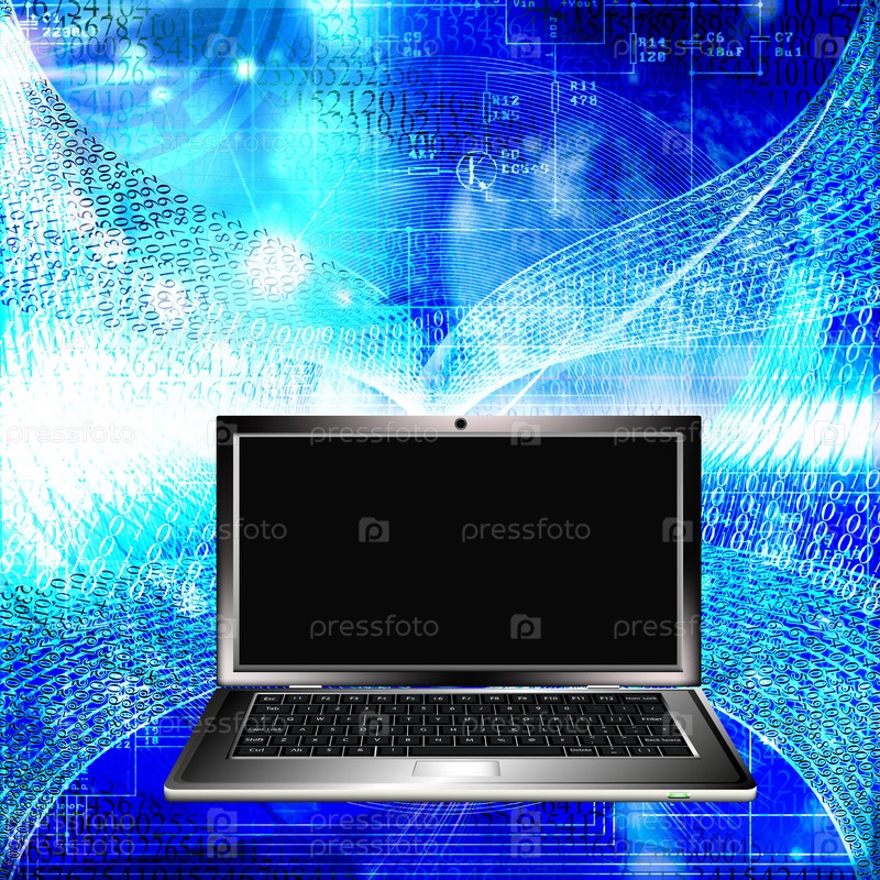Ноутбук на синем фоне