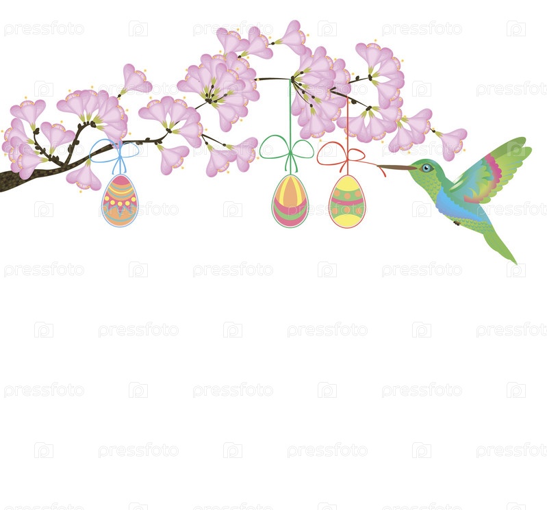 Цветущая ветка и пасхальные яйца