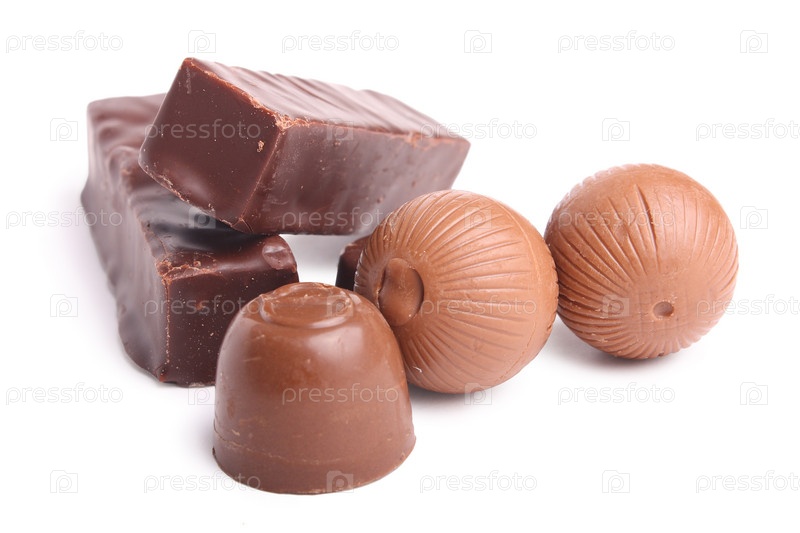 Сладкие вкусные шоколадные конфеты на белом фоне (изолированный)
