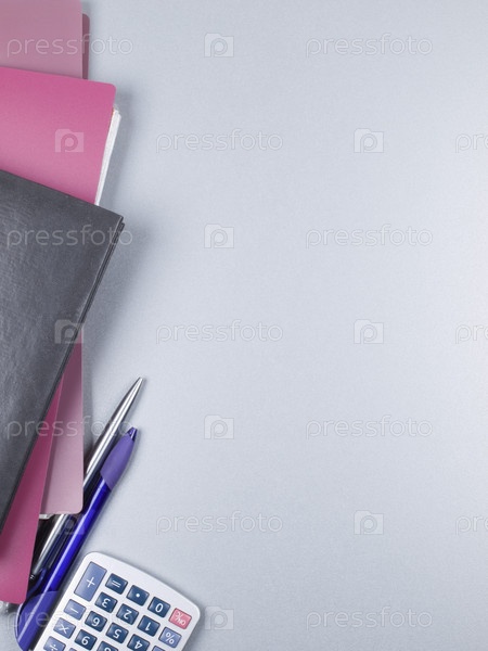 Серый фон с офисными принадлежностями