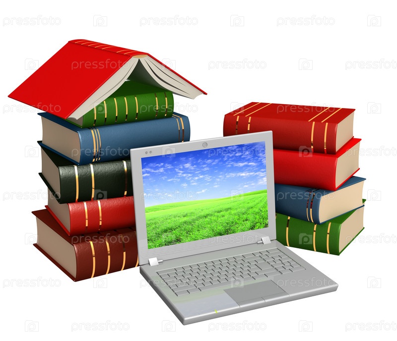 Ноутбук и стопки книг